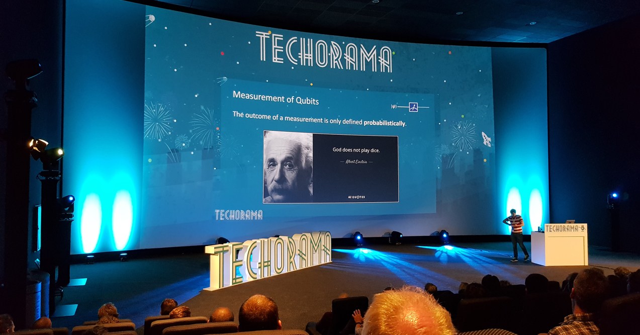 3. Quantum Computing by Bart de Smet. Well…the guy operates on a different dimension to the rest of us. Needless to say this talk mostly bounced off my head. Bart demoed Q# from Microsoft’s Quantum Development Kit. The key takeaway for me was that to store 32 qbits(quantum bits) we would need peta bytes of classical computer storage. That’s all. 🙂